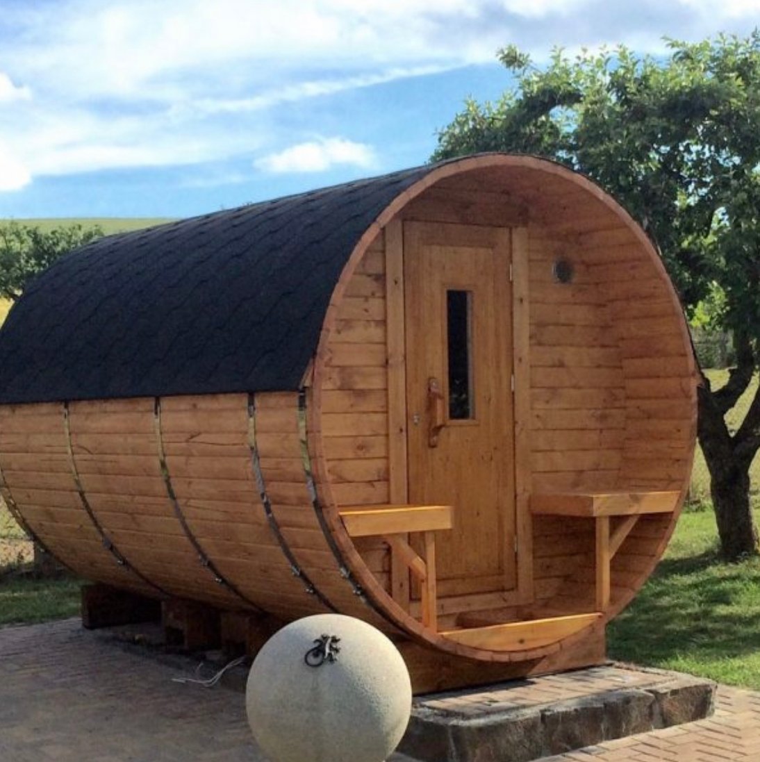 The shape of the sauna barrels originates from the “aging barrels”, which from the very beginning were used for fermenting wine and maturing other beverages. Because of this exceptional shape, the barrel is a very popular sauna building type, fitting nicely into one’s garden or the back yard.