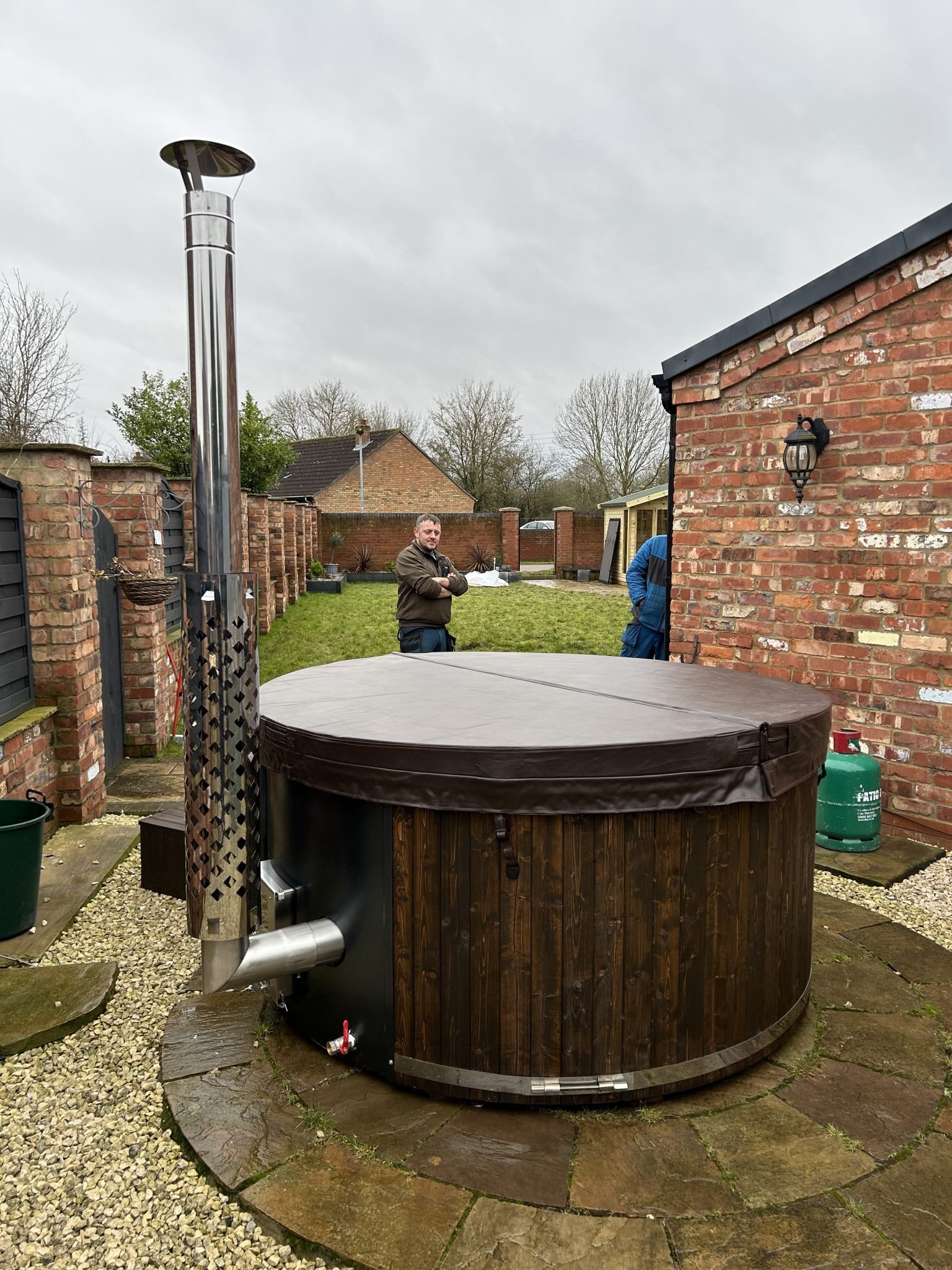 Standard set includes: fiberglass insert with outlet valve and pinewood finishing, tightened by 2 stainless steel bands, glassfiber inside seating, stainless steel oven, stainless steel flue with cap, pinewood safety fence for the hot tubs with inside oven and wooden 3-step stairs.