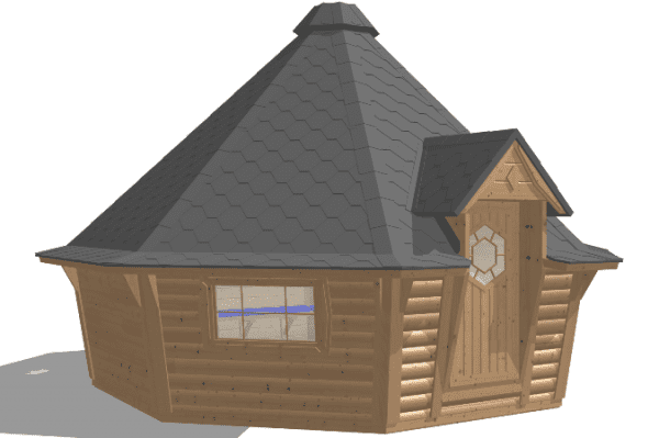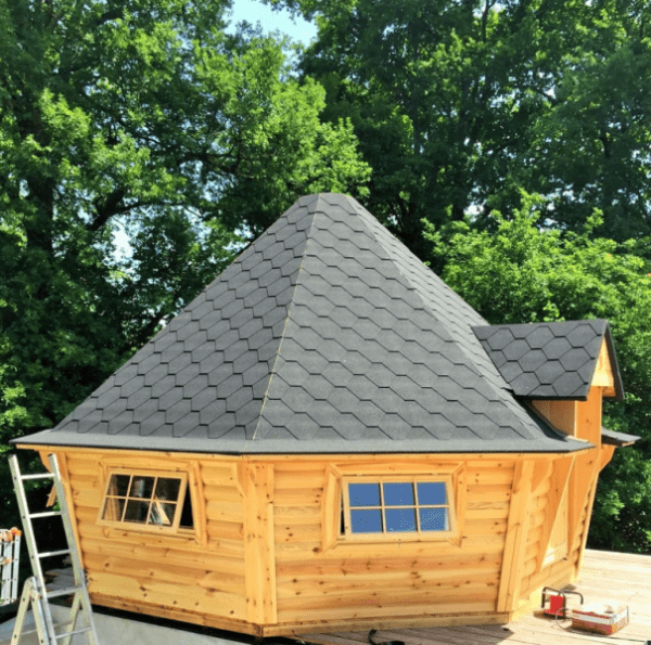 Roof thickness and finishing: 18 mm; Finnish bitumen shingles