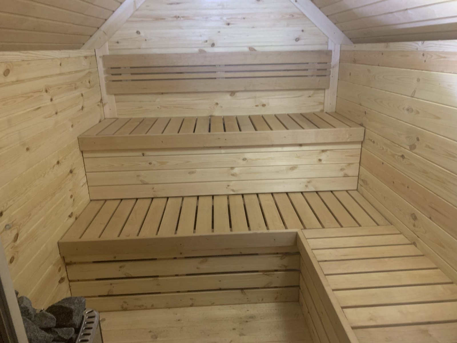 Our cabins can accommodate up to 15 people, depending on the sauna size chosen. The Sauna sizes range from 7.0 up to 16.5 sq. meters and can be from 3360 mm to 3810 mm height.