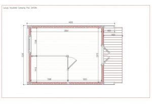 Produced from pine-wood with insulated structure; Luxury-Insulated Camping Pods are designed to be comfortable in different climate conditions. It ensures the Pod is warm, when it is cold outside. Luxury-Insulated Camping Pods, differently from Standard Camping Pods, can have a French style door not only in the front, but also on the side wall of the pod. Luxury-Insulated Camping Pods can be of 2.4 m or 3.25 m width and can be from 3.0 up to 5.9 m length. So of 2.4 m width Camping Pods can be fully completed in the factory and delivered to the destination and of 3.25 width require to be assembled in the determined place.