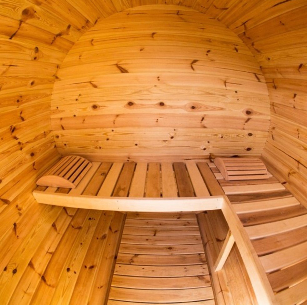 We produce sauna barrels in two diameters: 1.97 m or 2.27 m, from pinewood or thermo-wood, with the wall thickness of 46 mm and floor of 18 mm. The height of 1.97 m Sauna barrels is 2080 mm and of 2.27 m Sauna barrels – 2380 mm. Sauna room accommodates from 2 to 8 people, depending on the barrel size chosen