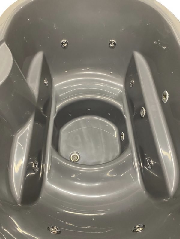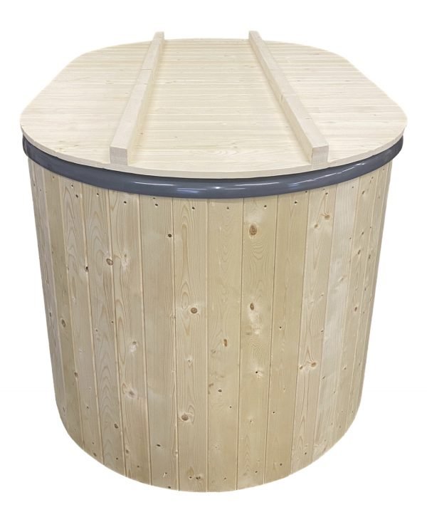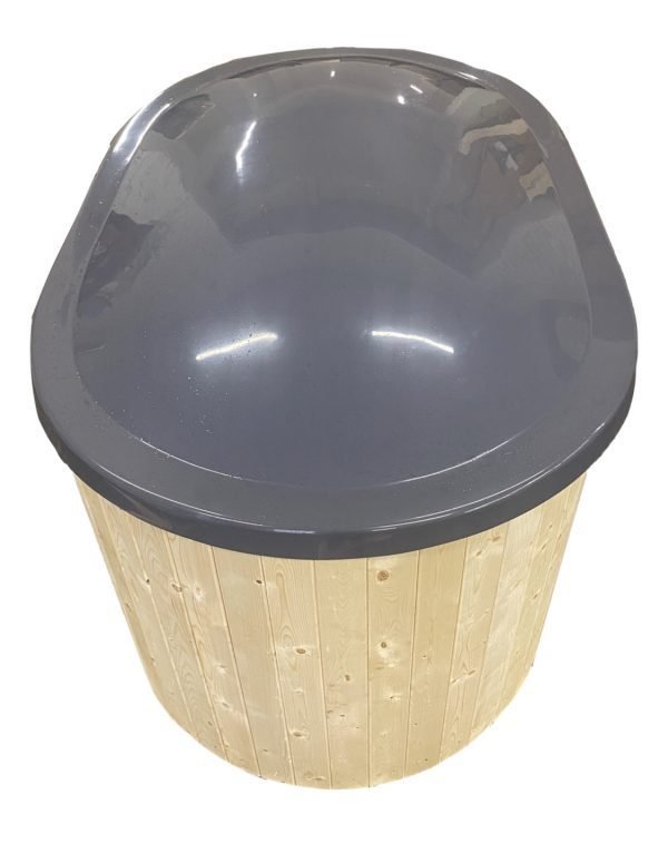 Fiberglass tubs are available in blue, white (cream) and grey colours. Fiberglass is of 3 mm and wooden wall of 20 mm thickness. We offer 1 type of Fiberglass tubs: “Comfort”. “Comfort” hot tubs are produced with 180 cm x 80cm inside diameter, which can be enjoyed up to 1-2 people at the same time. They require less water and maintain ergonomic seating. “Big” hot tubs are produced with 185 inside diameter and can accomodate up to 8-10 people at the same time. Also “Big” hot tubs are taller (inside h is 107 cm, while “Comfort” – 85 cm) and benches of “Big” hot tubs are higher – 40 cm (“Comfort” benches – 30 cm).