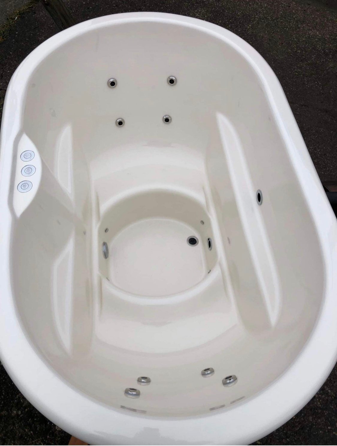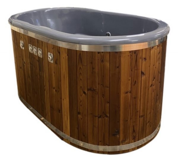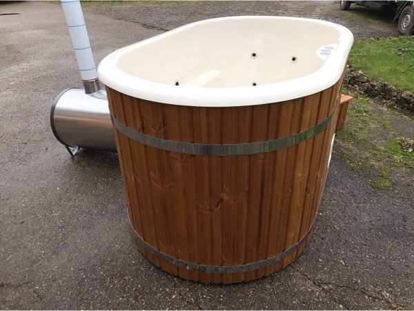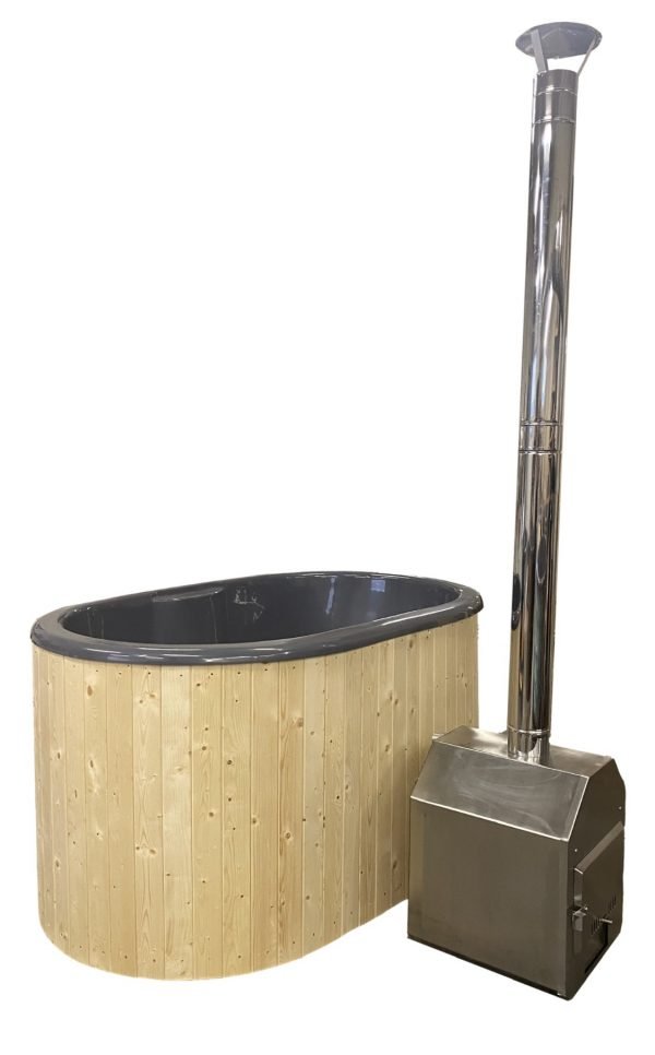 We offer fiberglass hot tubs with stainless steel oven, which can be outside the hot tub.